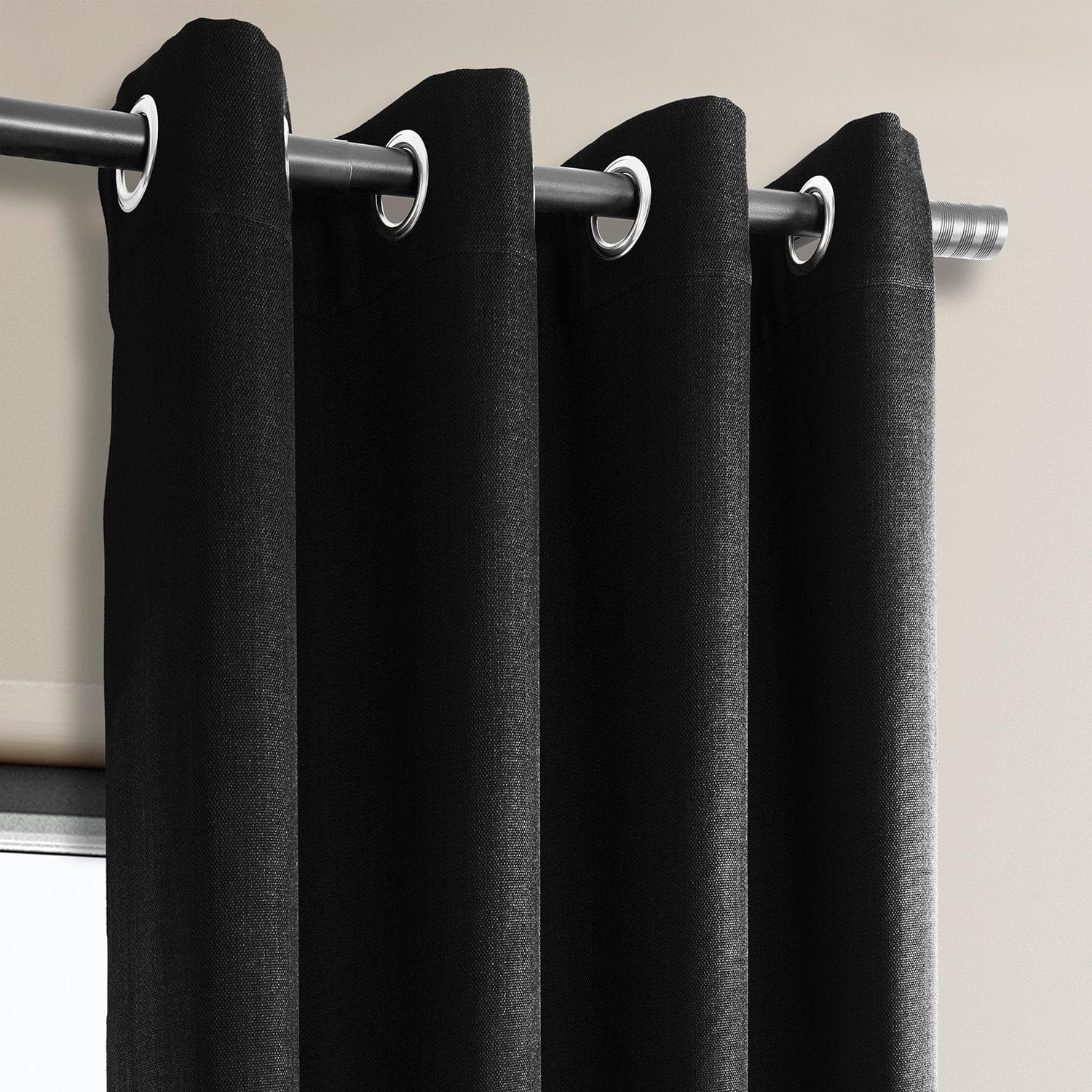 Essential Black Grommet Textured Faux Linen Room Darkening Curtain