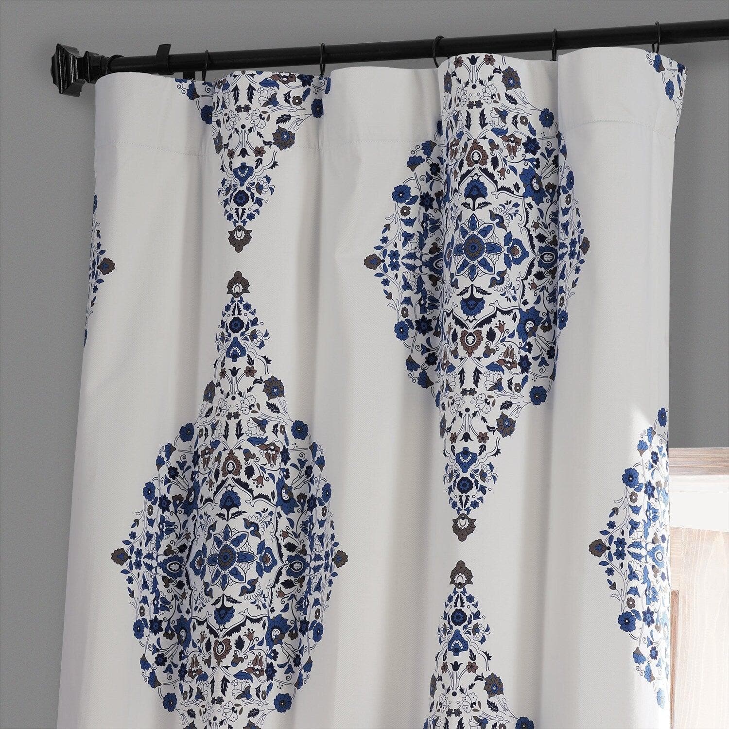 Kerala Blue Emblem Printed Cotton Hotel Blackout Curtain