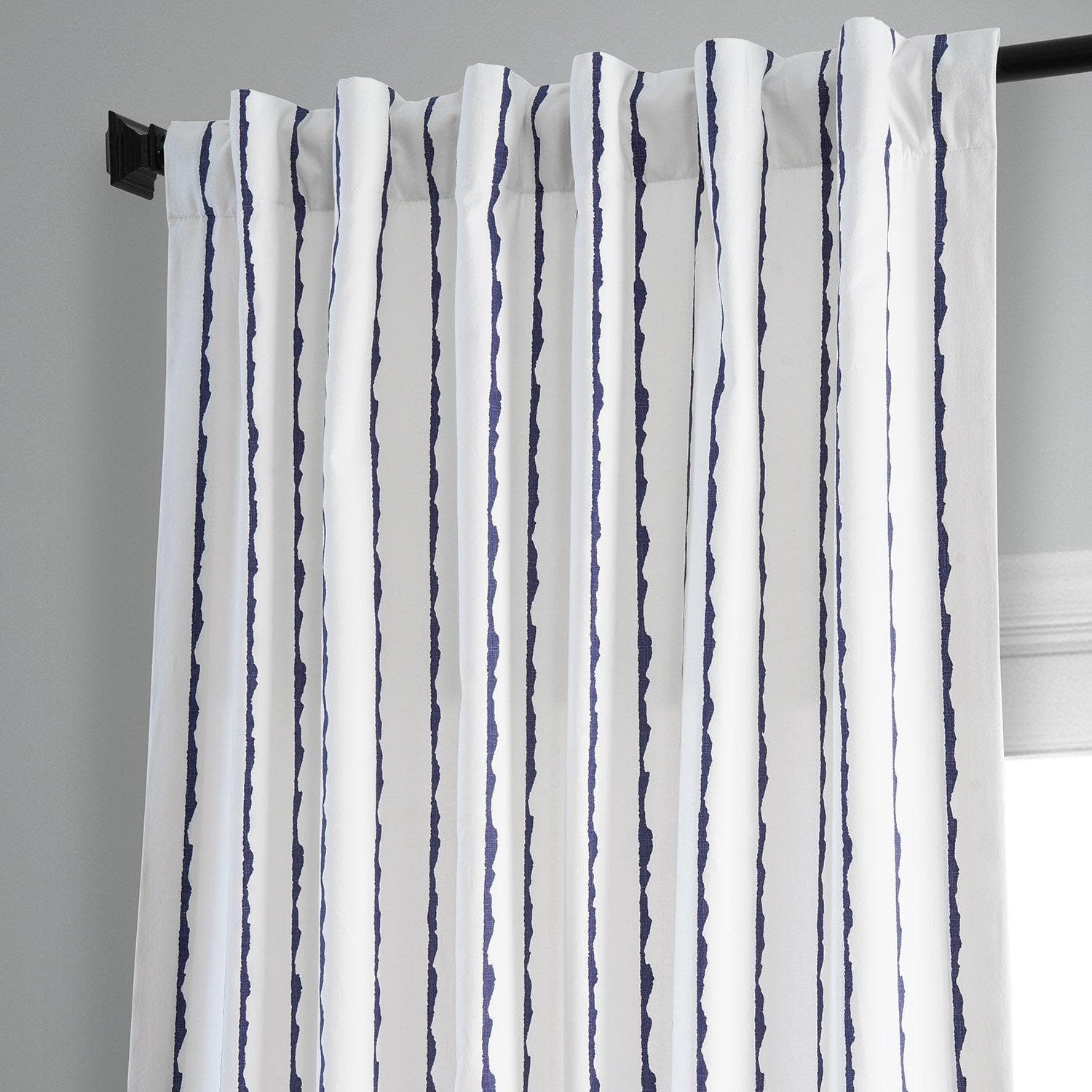 Sharkskin Blue Striped Printed Cotton Room Darkening Curtain
