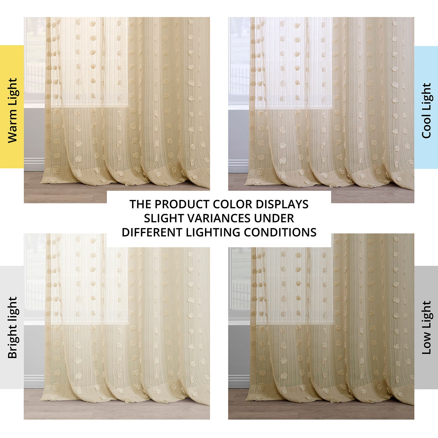 Strasbourg Dot Beige Geometric Patterned Faux Linen Sheer Curtain