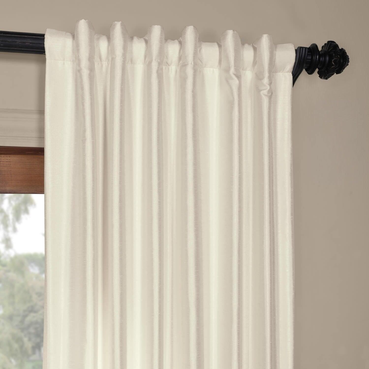 Translucent Cream Yarn Dyed Faux Dupioni Silk Room Darkening Curtain
