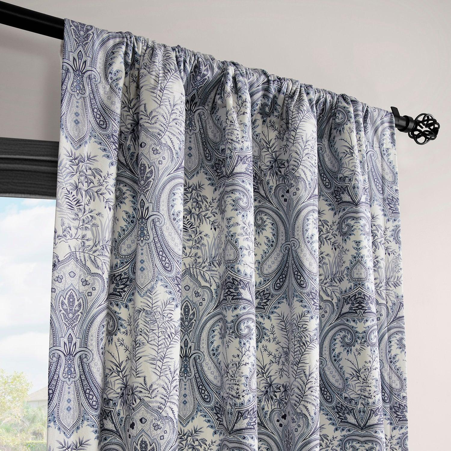 Victorian Blue Paisley Barcelona Velvet Room Darkening Curtain
