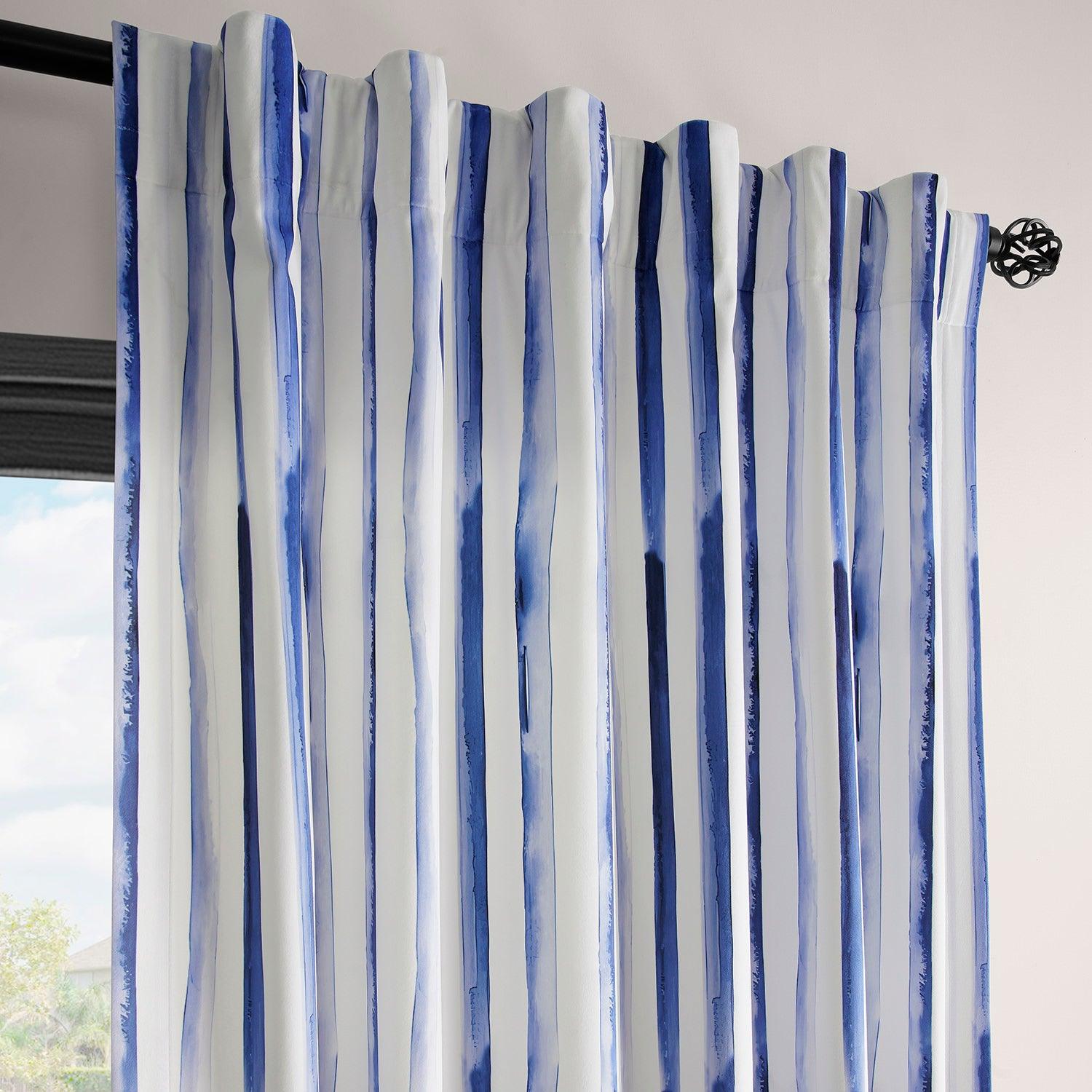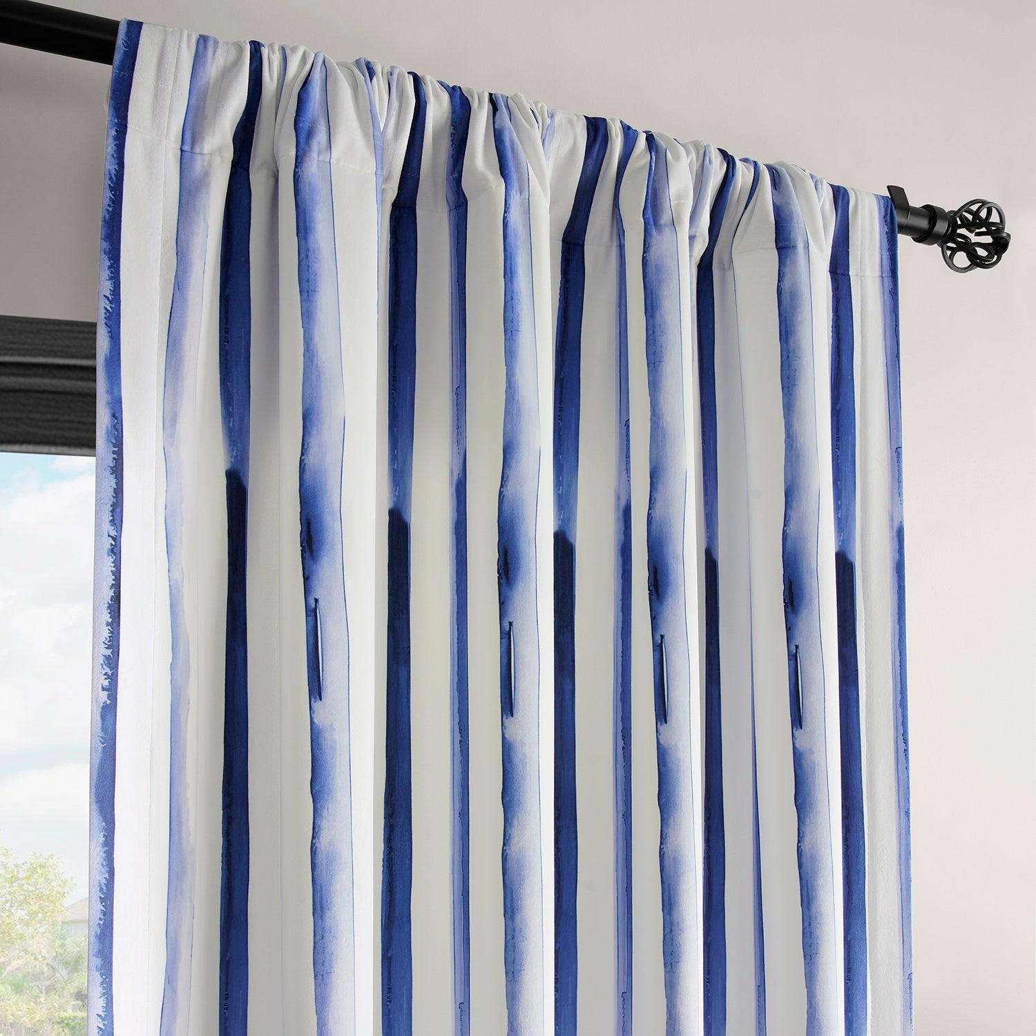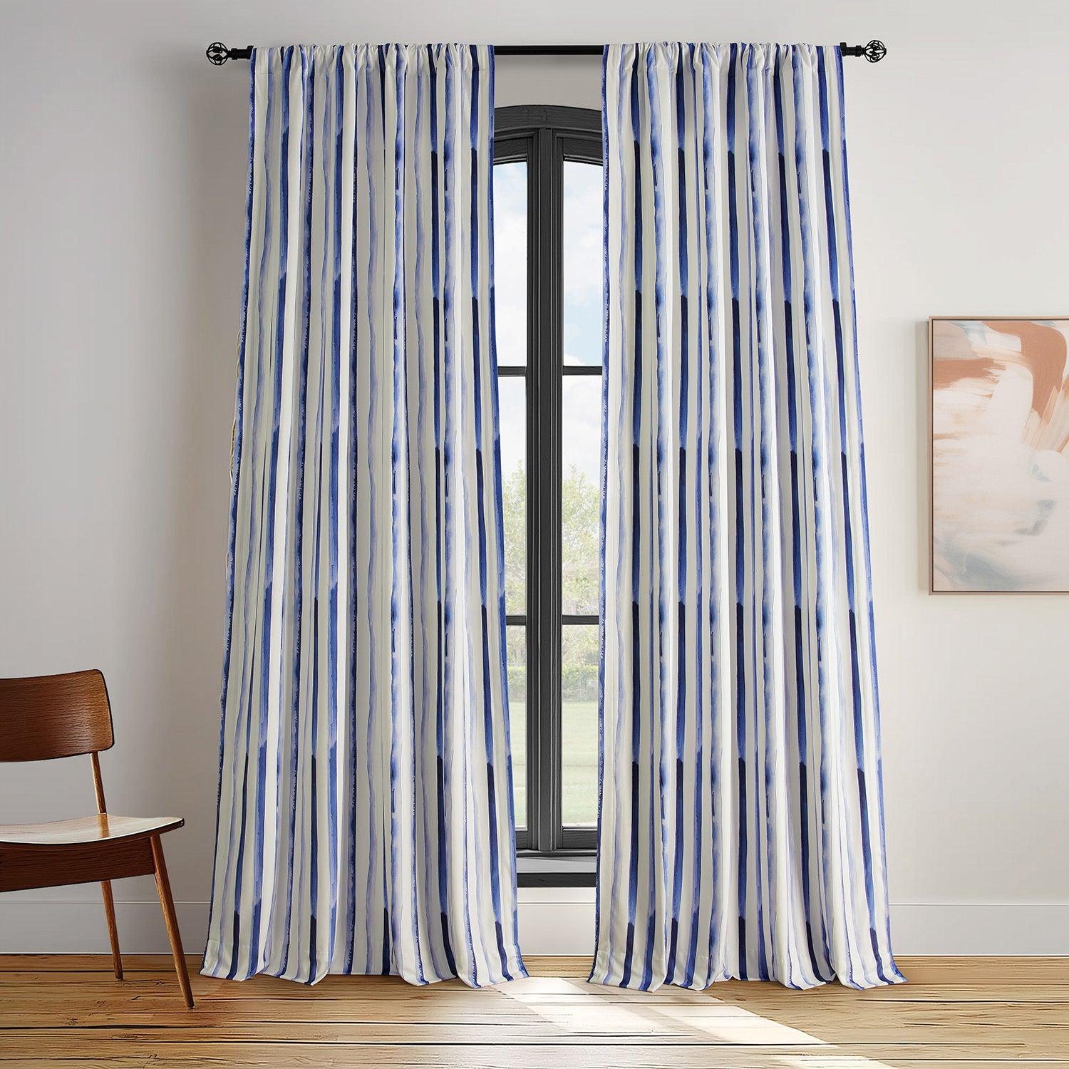 Waves Vertical Blue Striped Barcelona Velvet Room Darkening Curtain